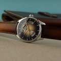 Este reloj marca Hamilton tiene una caja de Inox con un diámetro de 40 mm y cuenta con una correa de piel. Dentro de la caja se encuentra un mecanismo de ETA de alta calidad el cual esta protegido por un cristal Zafiro antirreflectante solitario.