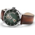 El Hamilton Jazzmaster Viewmatic equilibra a la perfección la vestimenta y el deporte, combinando una caja bellamente acabada con una mezcla de superficies pulidas y cepilladas y una intrigante esfera de corazón abierto que muestra los elementos mecánicos que laten debajo. Las muescas de la esfera, exquisitamente ejecutadas, tienen un bisel muy pulido que cambia bruscamente a un borde interior cepillado, dirigiendo la mirada hacia el movimiento automático H-10. Este movimiento Hamilton de gran precisión contiene una espiral Nivachron no magnética y tiene una reserva de marcha de nada menos que 80 horas. El Jazzmaster Viewmatic Open Heart Auto está disponible en varios colores y en tamaños de caja de 40 mm y 36 mm, tanto para hombre como para mujer.
