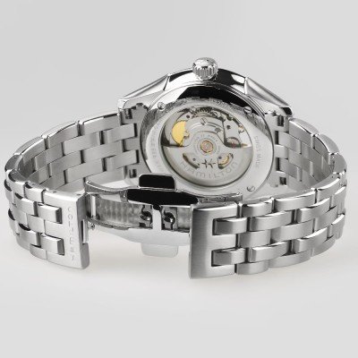 Como una de las líneas de relojes más distintivas de Hamilton, Jazzmaster es quizás la que más se caracteriza por su sofisticación y elegancia, tendiendo hacia la alta gama en términos de acabado y diseño. El "Open Heart" presenta una esfera recortada que deja al descubierto zonas clave del movimiento. De este modo, la legibilidad del reloj permanece intacta en gran medida, pero también le confiere un aspecto característico. Se exponen algunos de los rubíes del reloj, así como el tren de engranajes, el trinquete y el volante. La esfera tiene un acabado radial de rayos de sol con índices de rombos aplicados y agujas Dauphine bajo un cristal de zafiro. El movimiento H-10 es el fiable caballo de batalla de Hamilton, con espiral Nivachron y 80 horas de reserva de marcha.