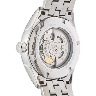 El Hamilton Jazzmaster Viewmatic equilibra a la perfección la vestimenta y el deporte, combinando una caja bellamente acabada con una mezcla de superficies pulidas y cepilladas y una intrigante esfera de corazón abierto que muestra los elementos mecánicos que laten debajo. Las muescas de la esfera, exquisitamente ejecutadas, tienen un bisel muy pulido que cambia bruscamente a un borde interior cepillado, dirigiendo la mirada hacia el movimiento automático H-10. Este movimiento Hamilton de gran precisión contiene una espiral Nivachron no magnética y tiene una reserva de marcha de nada menos que 80 horas. El Jazzmaster Viewmatic Open Heart Auto está disponible en varios colores y en tamaños de caja de 40 mm y 36 mm, tanto para hombre como para mujer.