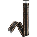 Esta correa de reloj de la :marca está hecha de textil y se adjunta al reloj mediante pasadores de resorte. La banda tiene un ancho de 22 mm y se cierra mediante un hebilla. La correa tiene una montura recta, lo que significa que esta correa es adecuada para todos los relojes de la Hamilton con montura recta.