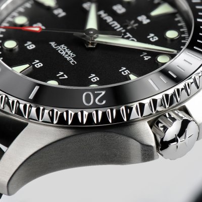 Este reloj marca Hamilton tiene una caja de Inox con un diámetro de 43 mm y cuenta con una correa de Goma. Dentro de la caja se encuentra un mecanismo de ETA de alta calidad el cual esta protegido por un cristal Zafiro antirreflectante solitario.