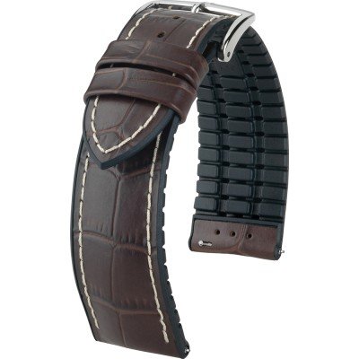 Esta correa está fabricada con resistente cuero de becerro italiano de grano completo con un aspecto de lona perforada. El núcleo de Hirsch Premium Caoutchouc de color crea un ajuste cómodo y una regulación suprema de la humedad.