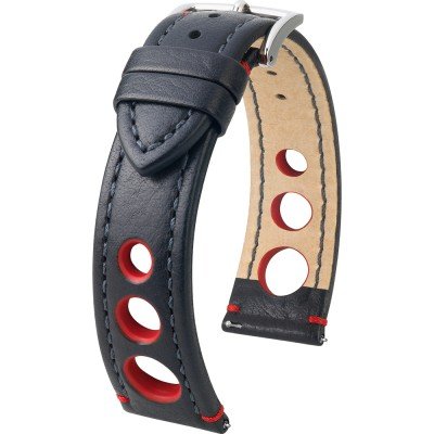 Esta correa de reloj de piel de becerro de aspecto vintage tiene el tradicional diseño de rally con agujeros para una mayor ventilación.