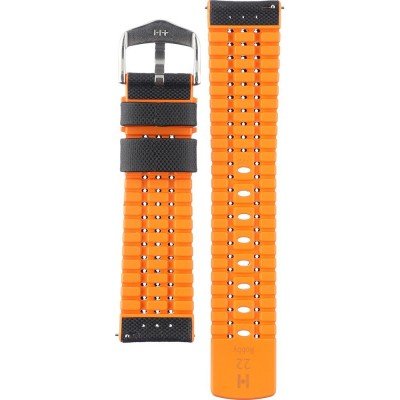 Esta correa de reloj de la :marca está hecha de goma y se adjunta al reloj mediante pasadores con resorte de liberación rápida. La banda tiene un ancho de 22 mm y se cierra mediante un hebilla. La correa tiene una montura recta, lo que significa que esta correa es adecuada para todos los relojes de la con montura recta.
