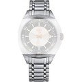 Esta correa de reloj de la :marca está hecha de acero inoxidable y se adjunta al reloj mediante pasadores de resorte. La banda tiene un ancho de 20 mm y se cierra mediante un cierre desplegable con botones pulsadores. La correa no tiene montura recta, lo que significa que esta correa sólo es adecuada para los relojes que se indican a continuación.