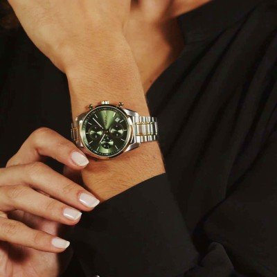 Este reloj marca Hugo Boss tiene una caja de Inox con un diámetro de 38 mm y cuenta con una correa de Inox. Dentro de la caja se encuentra un mecanismo de Miyota de alta calidad el cual esta protegido por un cristal Mineral.