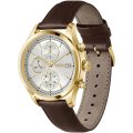 Este reloj marca Hugo Boss tiene una caja de Inox con un diámetro de 41 mm y cuenta con una correa de piel.
