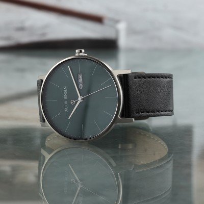 Este reloj marca Jacob Jensen tiene una caja de Titanio con un diámetro de 40 mm y cuenta con una correa de piel. Dentro de la caja se encuentra un mecanismo de Miyota de alta calidad el cual esta protegido por un cristal Zafiro.