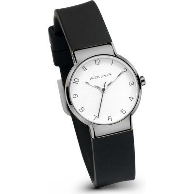 Este reloj marca Jacob Jensen tiene una caja de Titanio con un diámetro de 29 mm y cuenta con una correa de Goma. Dentro de la caja se encuentra un mecanismo de Miyota de alta calidad el cual esta protegido por un cristal Zafiro.