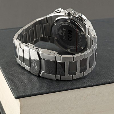 Este reloj marca Jaguar tiene una caja de Inox con un diámetro de 44 mm y cuenta con una correa de Inox. Dentro de la caja se encuentra un mecanismo de Ronda de alta calidad el cual esta protegido por un cristal Zafiro.