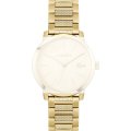 Esta correa de reloj de la :marca está hecha de acero inoxidable y se adjunta al reloj mediante pasadores de resorte. La banda tiene un ancho de 19 mm y se cierra mediante un cierre desplegable con botones pulsadores. La correa tiene una montura recta, lo que significa que esta correa es adecuada para todos los relojes de la Lacoste con montura recta.