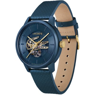 Este reloj marca Lacoste tiene una caja de Aluminio con un diámetro de 44 mm y cuenta con una correa de piel. Dentro de la caja se encuentra un mecanismo de Seagull de alta calidad el cual esta protegido por un cristal Mineral.