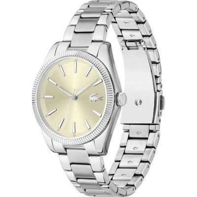 Este reloj marca Lacoste tiene una caja de Inox con un diámetro de 36 mm y cuenta con una correa de Inox. Dentro de la caja se encuentra un mecanismo de Miyota de alta calidad el cual esta protegido por un cristal Mineral.