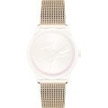 Esta correa de reloj de la :marca está hecha de acero inoxidable y se adjunta al reloj mediante pasadores de resorte. La banda tiene un ancho de 18 mm y se cierra mediante un cierre milanés. La correa tiene una montura recta, lo que significa que esta correa es adecuada para todos los relojes de la Lacoste con montura recta.