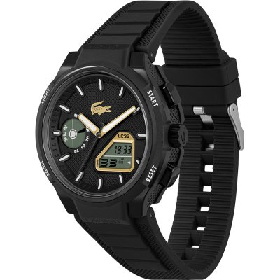 Este reloj marca Lacoste tiene una caja de Resina con un diámetro de 44 mm y cuenta con una correa de Goma. Dentro de la caja se encuentra un mecanismo de Seiko de alta calidad el cual esta protegido por un cristal Mineral.