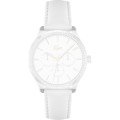 Esta correa de reloj de la :marca está hecha de cuero y se adjunta al reloj mediante pasadores de resorte. La banda tiene un ancho de 18 mm y se cierra mediante un hebilla. La correa tiene una montura recta, lo que significa que esta correa es adecuada para todos los relojes de la Lacoste con montura recta.