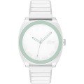 Esta correa de reloj de la :marca está hecha de goma de silicona y se adjunta al reloj mediante pasadores de resorte. La banda tiene un ancho de 22 mm y se cierra mediante un hebilla. La correa tiene una montura recta, lo que significa que esta correa es adecuada para todos los relojes de la Lacoste con montura recta.