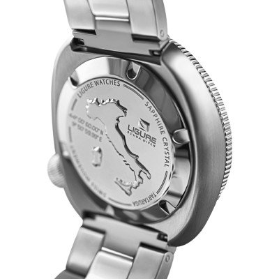 En el Mediterráneo, frente a las costas de Liguria, se pueden encontrar muchas especies de tortugas. La forma de su caparazón inspiró el diseño del reloj Ligure Tartaruga. Al igual que el caparazón de una tortuga, la caja se superpone ligeramente al cuello o, en este caso, a la correa, lo que confiere al reloj un aspecto inconfundible. Otra característica típica de los relojes Ligure son los índices en aplique rellenos de Super LumiNova suiza de grado X con un detalle de color rojo, técnicamente muy difícil de ejecutar. Los índices se complementan con robustas agujas en forma de espada del mismo estilo. Viaje con estilo a la "Bella Italia" con este práctico y sofisticado reloj de buceo.