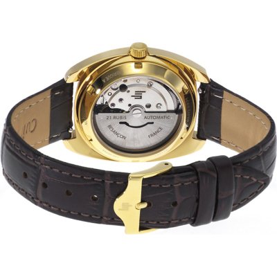 Este reloj marca LIP tiene una caja de Inox con un diámetro de 35 mm y cuenta con una correa de piel. Dentro de la caja se encuentra un mecanismo de Miyota de alta calidad el cual esta protegido por un cristal Zafiro antirreflectante solitario.