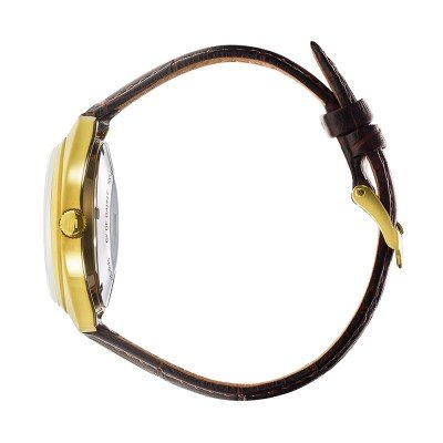 Este reloj marca LIP tiene una caja de Inox con un diámetro de 35 mm y cuenta con una correa de piel. Dentro de la caja se encuentra un mecanismo de Ronda de alta calidad el cual esta protegido por un cristal Mineral.