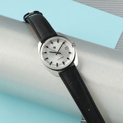 Este reloj marca LIP tiene una caja de Inox con un diámetro de 35 mm y cuenta con una correa de piel. Dentro de la caja se encuentra un mecanismo de Ronda de alta calidad el cual esta protegido por un cristal Mineral.