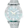 Esta correa de reloj de la :marca está hecha de acero inoxidable y se adjunta al reloj mediante pasadores de resorte. La banda tiene un ancho de 20 mm y se cierra mediante un cierre desplegable con botones pulsadores. La correa no tiene montura recta, lo que significa que esta correa sólo es adecuada para los relojes que se indican a continuación.
