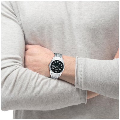 Este reloj marca Lorus tiene una caja de Inox con un diámetro de 37 mm y cuenta con una correa de Inox. Dentro de la caja se encuentra un mecanismo de Seiko Instruments Inc. de alta calidad el cual esta protegido por un cristal Mineral.
