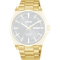 Esta correa de reloj de la :marca está hecha de metal y se adjunta al reloj mediante pasadores de resorte. La banda tiene un ancho de 22 mm y se cierra mediante un cierre desplegable con botones pulsadores. La correa no tiene montura recta, lo que significa que esta correa sólo es adecuada para los relojes que se indican a continuación.