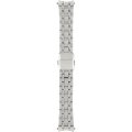 Esta correa de reloj de la :marca está hecha de acero inoxidable y se adjunta al reloj mediante pasadores de resorte. La banda tiene un ancho de 18 mm y se cierra mediante un cierre desplegable con botones pulsadores. La correa no tiene montura recta, lo que significa que esta correa sólo es adecuada para los relojes que se indican a continuación.