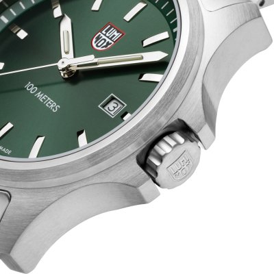 Este reloj marca Luminox tiene una caja de Inox con un diámetro de 43 mm y cuenta con una correa de Inox. Dentro de la caja se encuentra un mecanismo de Ronda de alta calidad el cual esta protegido por un cristal Zafiro antirreflectante solitario.