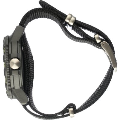 Este reloj marca Luminox tiene una caja de Carbón con un diámetro de 44 mm y cuenta con una correa de Goma. Dentro de la caja se encuentra un mecanismo de Ronda de alta calidad el cual esta protegido por un cristal Mineral duro.
