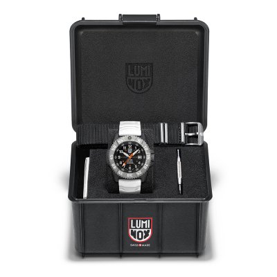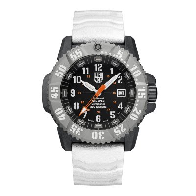 Este reloj marca Luminox tiene una caja de Carbón con un diámetro de 46 mm y cuenta con una correa de Goma. Dentro de la caja se encuentra un mecanismo de ETA de alta calidad el cual esta protegido por un cristal Zafiro antirreflectante solitario.