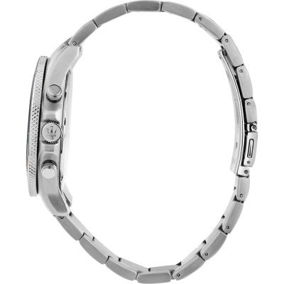 Este reloj marca Maserati tiene una caja de Inox con un diámetro de 43 mm y cuenta con una correa de Inox. Dentro de la caja se encuentra un mecanismo de Miyota de alta calidad el cual esta protegido por un cristal Mineral.