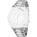 Esta correa de reloj de la :marca está hecha de acero inoxidable y se adjunta al reloj mediante pasadores de resorte. La banda tiene un ancho de 21 mm y se cierra mediante un cierre desplegable con botones pulsadores. La correa tiene una montura recta, lo que significa que esta correa es adecuada para todos los relojes de la Maserati con montura recta.