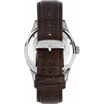Este reloj marca Maserati tiene una caja de Inox con un diámetro de 42 mm y cuenta con una correa de piel. Dentro de la caja se encuentra un mecanismo de Miyota de alta calidad el cual esta protegido por un cristal Mineral.