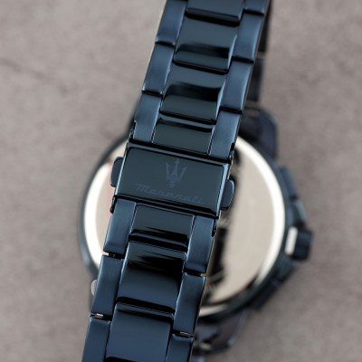 Este reloj marca Maserati tiene una caja de Inox con un diámetro de 44 mm y cuenta con una correa de Inox. Dentro de la caja se encuentra un mecanismo de Seiko Instruments Inc. de alta calidad el cual esta protegido por un cristal Mineral.