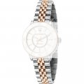 Esta correa de reloj de la :marca está hecha de acero inoxidable y se adjunta al reloj mediante pasadores de resorte. La banda tiene un ancho de 14 mm y se cierra mediante un cierre desplegable con botones pulsadores. La correa no tiene montura recta, lo que significa que esta correa sólo es adecuada para los relojes que se indican a continuación.