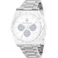 Esta correa de reloj de la :marca está hecha de acero inoxidable y se adjunta al reloj mediante pasadores de resorte. La banda tiene un ancho de 24 mm y se cierra mediante un cierre desplegable con botones pulsadores. La correa no tiene montura recta, lo que significa que esta correa sólo es adecuada para los relojes que se indican a continuación.