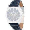 Esta correa de reloj de la :marca está hecha de cuero y se adjunta al reloj mediante pasadores de resorte. La banda tiene un ancho de 24 mm y se cierra mediante un hebilla. La correa tiene una montura recta, lo que significa que esta correa es adecuada para todos los relojes de la Maserati con montura recta.