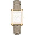 Esta correa de reloj de la :marca está hecha de cuero y se adjunta al reloj mediante pasadores de resorte. La banda tiene un ancho de 18 mm y se cierra mediante un hebilla. La correa tiene una montura recta, lo que significa que esta correa es adecuada para todos los relojes de la Michael Kors con montura recta.