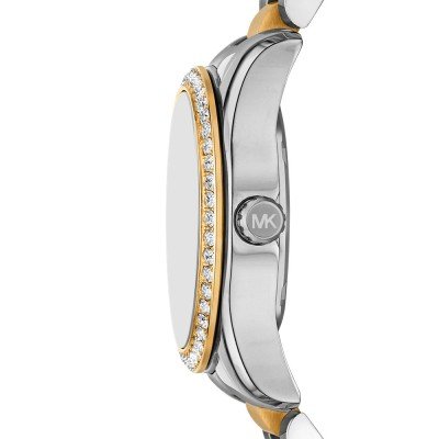 Este reloj marca Michael Kors tiene una caja de Inox con un diámetro de 33 mm y cuenta con una correa de Inox. Dentro de la caja se encuentra un mecanismo de Miyota de alta calidad el cual esta protegido por un cristal Mineral.