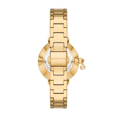 Este reloj marca Michael Kors tiene una caja de Inox con un diámetro de 32 mm y cuenta con una correa de Inox. Dentro de la caja se encuentra un mecanismo de Seiko Instruments Inc. de alta calidad el cual esta protegido por un cristal Mineral.