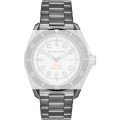Esta correa de reloj de la :marca está hecha de acero inoxidable y se adjunta al reloj mediante pasadores de resorte. La banda tiene un ancho de 22 mm y se cierra mediante un cierre desplegable con botones pulsadores. La correa no tiene montura recta, lo que significa que esta correa sólo es adecuada para los relojes que se indican a continuación.