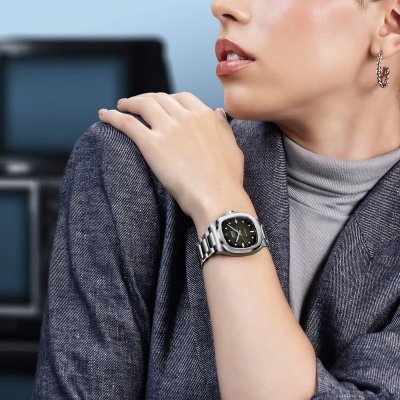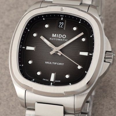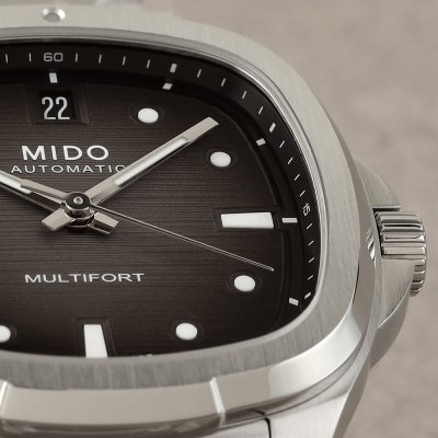 El Multifort TV 35 es la versión femenina de la conocida colección Mido Multifort, con su característica caja en forma de TV de la vieja escuela. Gracias a su movimiento automático Calibre 72 con 72 horas de reserva de marcha, el grosor del reloj puede limitarse a poco más de 9 mm, lo que lo convierte en un reloj muy agradable de llevar. La esfera ofrece una mezcla de los elementos de diseño característicos de la colección: esquinas redondeadas, índices luminosos empotrados, agujas bastón y un sutil protector de corona. Todos los relojes de esta colección se entregan con una correa o brazalete adicional con sistema de liberación rápida para cambiar la correa de forma rápida y sencilla.