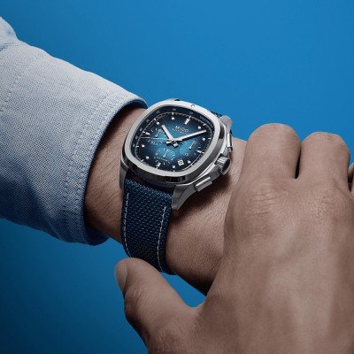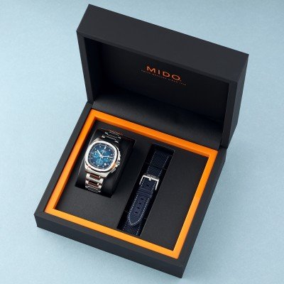 El Mido Multifort TV Big Date se basa en un diseño de los años setenta. Esta forma se utilizaba a menudo en los relojes deportivos para hombre de la época y ahora vuelve a estar completamente de moda, pero Mido fue originalmente la primera marca en introducir esta forma en 1973. El Multifort TV Big Date está disponible en varios colores y permite elegir entre un correa de acero inoxidable o una de caucho, así como una versión con cronógrafo. El reloj tiene un tamaño deportivo de 40 mm, pero luce elegante gracias a sus esquinas redondeadas y su acabado refinado. Con la posibilidad de elegir entre varios tipos de correas fácilmente intercambiables, el reloj es adecuado para todos los días y ocasiones.