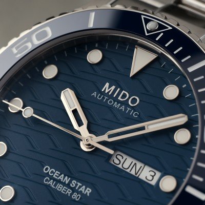 El Mido Ocean Star 200C es un reloj de buceo clásico que combina funcionalidad y estilo. La esfera está grabada con un acertado motivo ondulado estilizado y contiene un indicador de fecha y día a las 3 en punto. Las características típicas de un reloj de buceo son la corona atornillada con guardacorona, los índices aplicados individualmente recubiertos de Super-Luminova® blanca y, por supuesto, la resistencia al agua de 20 ATM. El bisel de buceo unidireccional del reloj merece una mención especial: incrustaciones de cerámica blanda satinada, de color a juego con la esfera. El movimiento automático Calibre 80, con una reserva de marcha de hasta 80 horas, garantiza una fiabilidad excepcional, en un reloj ideal para los amantes de la relojería que buscan rendimiento y buena apariencia en el día a día.