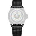 Esta correa de reloj de la :marca está hecha de acero inoxidable y se adjunta al reloj mediante pasadores de resorte. La banda tiene un ancho de 21 mm y se cierra mediante un cierre milanés. La correa no tiene montura recta, lo que significa que esta correa sólo es adecuada para los relojes que se indican a continuación.