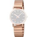 Esta correa de reloj de la :marca está hecha de acero inoxidable y se adjunta al reloj mediante pasadores de resorte. La banda tiene un ancho de 18 mm y se cierra mediante un cierre milanés. La correa tiene una montura recta, lo que significa que esta correa es adecuada para todos los relojes de la Mondaine con montura recta.
