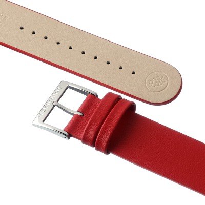 Esta correa de reloj de la :marca está hecha de piel vegana y se adjunta al reloj mediante pasadores con resorte de liberación rápida. La banda tiene un ancho de 20 mm y se cierra mediante un hebilla. La correa tiene una montura recta, lo que significa que esta correa es adecuada para todos los relojes de la Mondaine con montura recta.